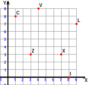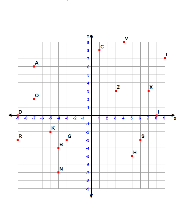 State the letters corresponding to the following coordinates: