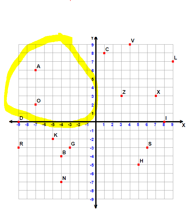 Which quadrant has points with negative x-coordinates and positive y-coordinates?