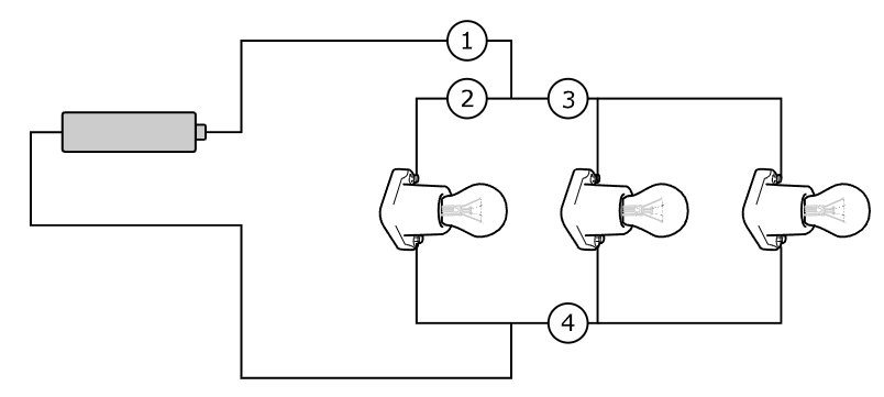 Cutting the wire at which numbered position would allow two bulbs to remain on?