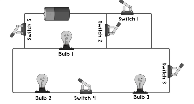 Which switch(es) would need to be closed so ONLY bulbs 2 and 3 turn on?