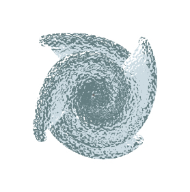 has a bulging middle and arms that coil outwards.