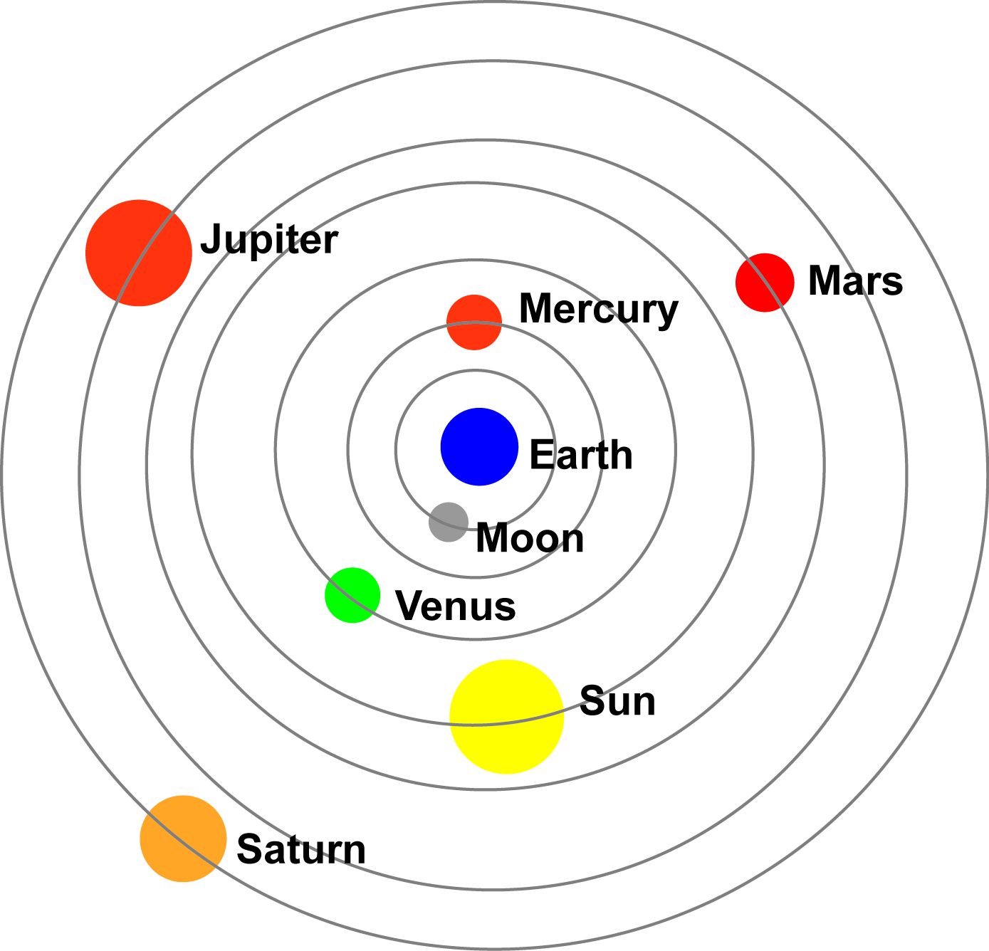 In the geocentric model, Earth is at the center of our solar system. In a heliocentric model, the Sun is at the center of the solar system.