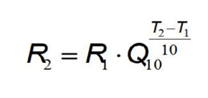 This equation mathematically correlates the increased temperature of an accelerated reagent stability test with real time equivalent in days at the standard storage temperature.
