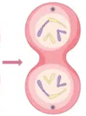 In this phase of mitosis, you can see two new nuclei begin to form, and the original cell is starting to become two.