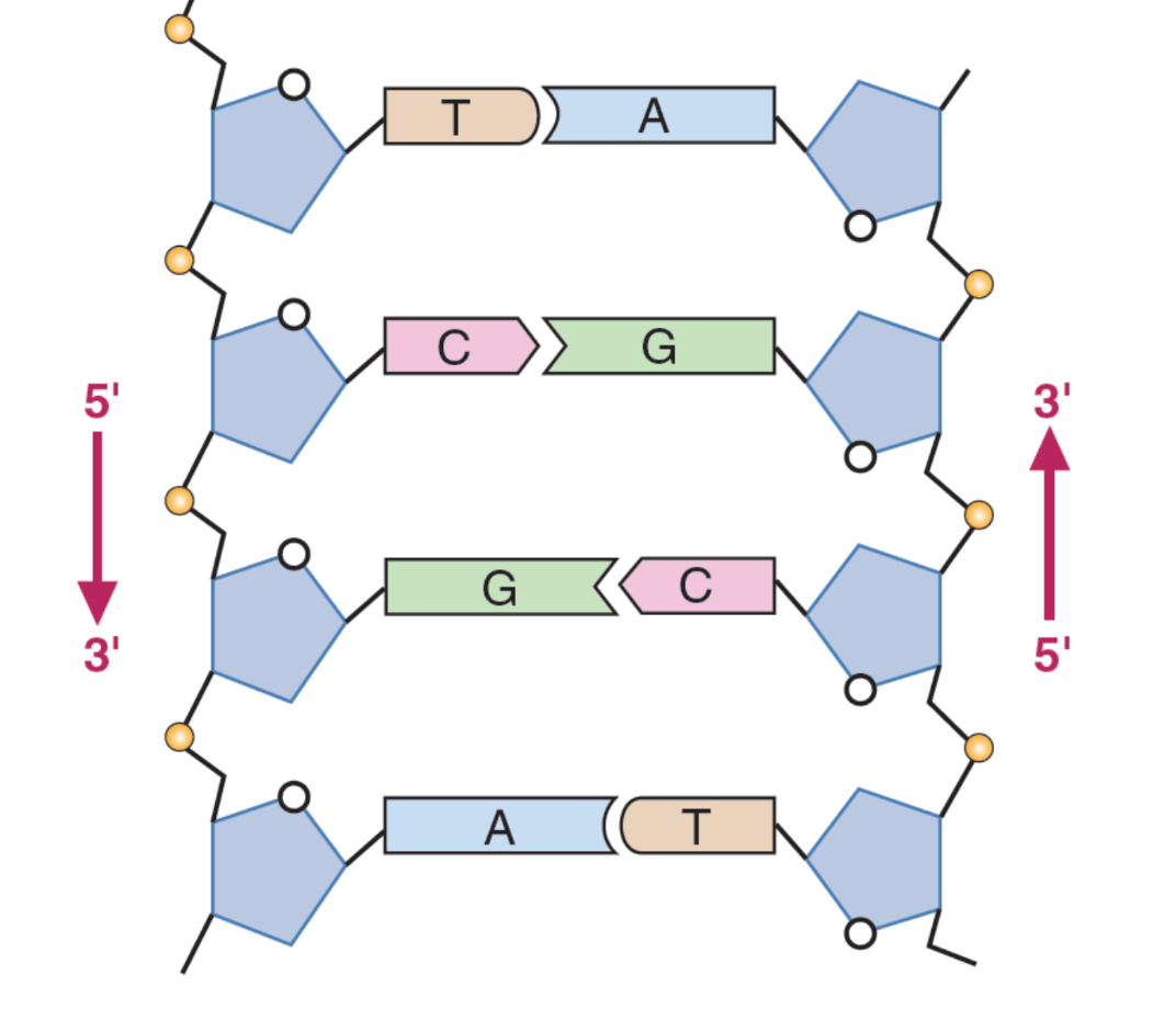 (therefore, high amounts of A-T bonds means a lower DNA melting temp. since there's only 2 H bonds)