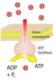 The movement of this molecule across the inner mitochondrial membrane via passive transport powers the creation of ATP