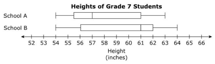 School A are typically shorter than grade 7 students from School B because of the difference in the medians of grade 7 student heights at the schools.