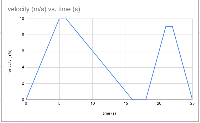 What is the velocity of the final 8 seconds of the graph?
