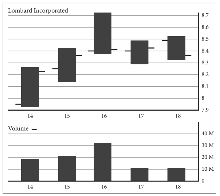 Approximately how many shares of Lombard Incorporated were traded over the five days?