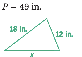 Find the unknown side length of the triangle given the perimeter P. Then classify the triangle by its side length.