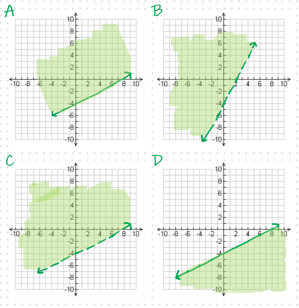 True or False: A point on the boundary line will make the equation true if the inequality is