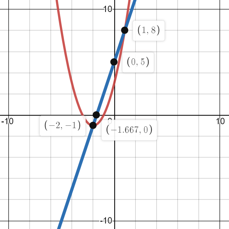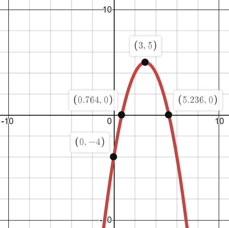 The new equation if the parent quadratic function is translated up 5 and to the right 3.