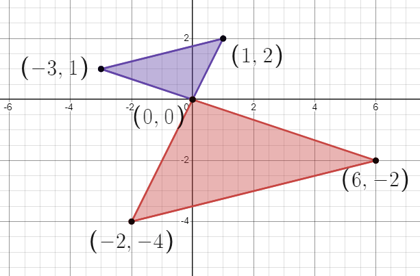 A' = (-2, -4), B' = (0, 0), C' = (6, -2)