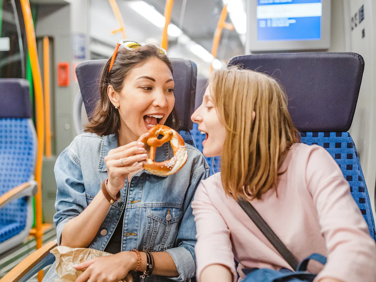 Yesterday, Kelly and Sally .... a snack while they were on the bus.