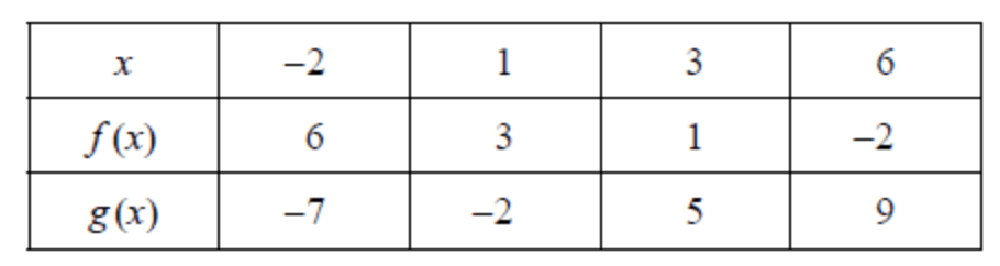 Given the table below. Find  (g@f)(6)