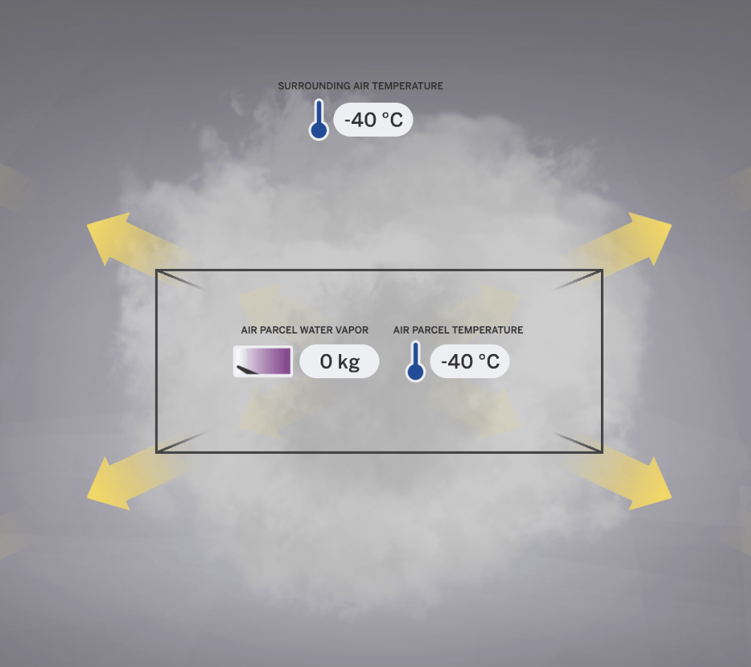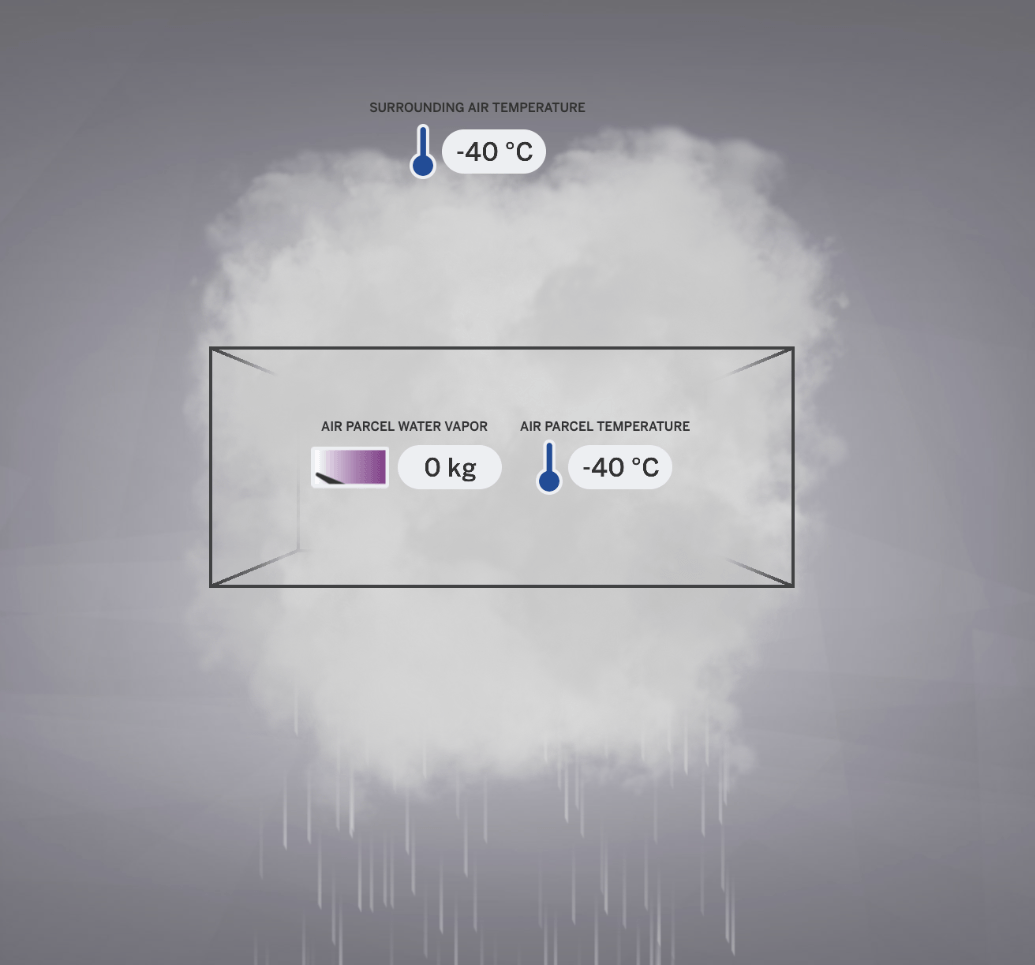 When water vapor in an air parcel cools, it can condense into liquid water which can form a cloud and fall as rain.