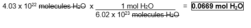 Convert 4.03 x 1022 molecules of water to moles of water.