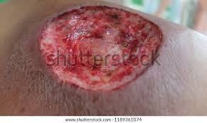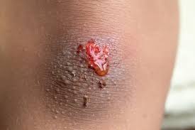 Second intention wound healing in which the wound is left open to heal and the space is filled in from the bottom upward with granulation tissue