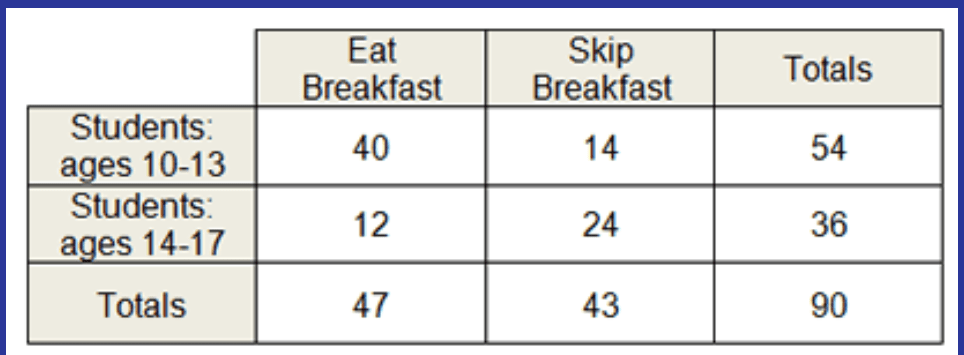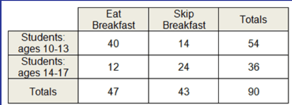 Given a students eats breakfast, what is the probability that they are aged 14-17?