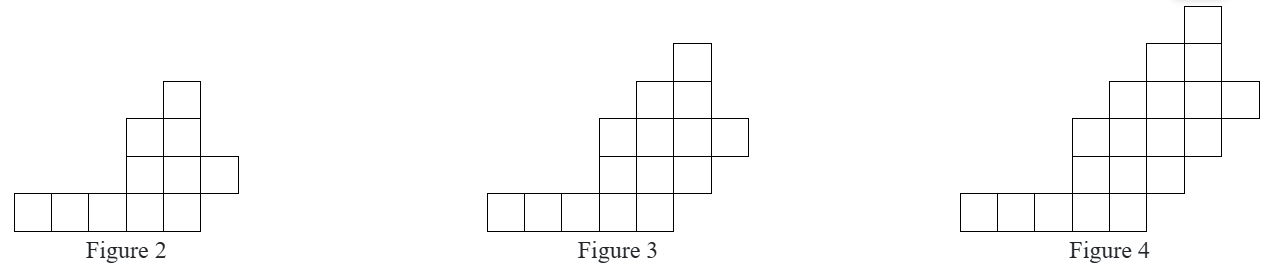 Figure 0 has two tiles next to each other, figure 4 has a 2 x 4 box and 10 tiles across the top.