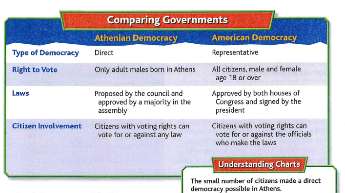 Athenian women - less freedom, could not leave home without male relative. Expected to care for the home and raise children and could not hold office or vote.