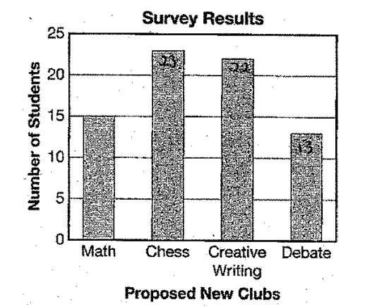 Heather conducts a survey to find out how many students would like to join one of four proposed new clubs.
