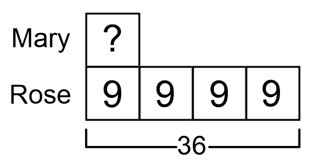 Rose and Mary baked some cookies. Rose baked 4 times as many cookies as Mary. If Rose baked 36 cookies, how many cookies did Mary bake? (You must include a bar model.)