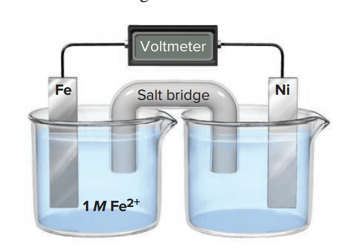 a) from the iron half cell to the nickel half cell (anode to cathode)
