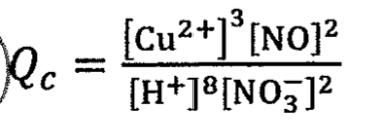 Cu(s) + H+(aq) + NO3- <-> Cu2+(aq) + NO(g) + H2O (l)