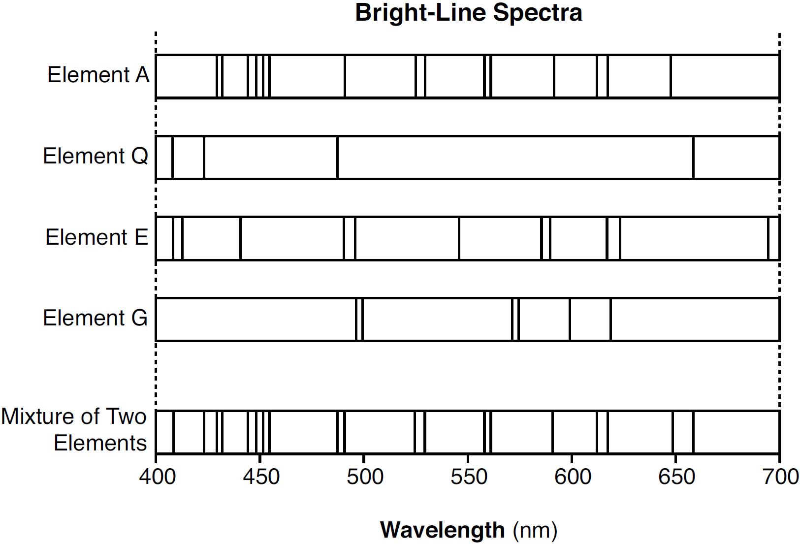 Given the bright-line spectra of four elements and the spectrum of a mixture formed from two of these elements:
