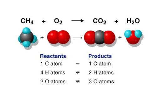 According to the Law of Conservation of Mass, we cannot create or destroy matter so the products and reactants should match.