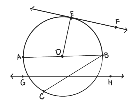A tangent and a radius that touch the same point on the circle form what kind of angle?