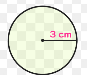 A circle has a diameter of 3 inches. This is the circumference. Use π = 3.14.