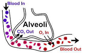 What process moves oxygen from the alveoli into the blood?