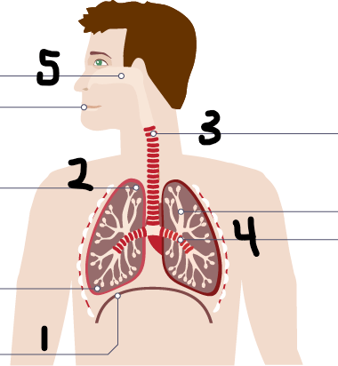 What are the nose or mouth, pharynx, larynx, trachea, (in the lungs), bronchi, bronchioles, and alveoli?