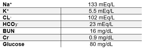 A 35-year-old man presents to the clinic for a follow-up exam. He complains of progressive fatigue, low mood, and weight loss. He was diagnosed with renal cell carcinoma 3 months ago and is currently undergoing chemotherapy. He reports having low mental and physical energy. His temperature is 98°F (36.7°C), pulse is 116/min, and blood pressure is 85/50 mmHg. Physical exam shows tanned skin and bluish-black gums. The abdomen is soft, nondistended, and nontender. Serum report is attached.