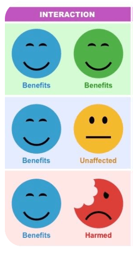Name the three symbiotic relationships shown by the diagram below (in order):