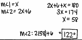 The 2 angles are ____________ angles and this is the measure of angle X.
