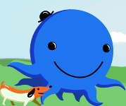 He's Big, He's blue, He wears a tiny black hat and his best friend is a hot dog dog named Weenie.