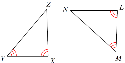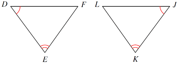 Since there are two pairs of congruent Angles, the third angles must also be congruent (180 theorem)