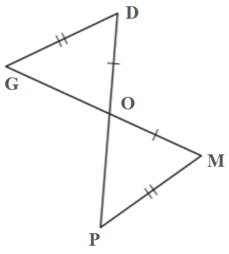 Here is a cut gem. What side lengths do you need to know in order to prove congruence between the pink and green triangles?