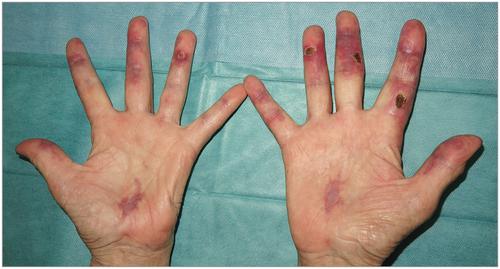Associated with rapidly progressive ILD, skin and oral ulcers, palmar papules