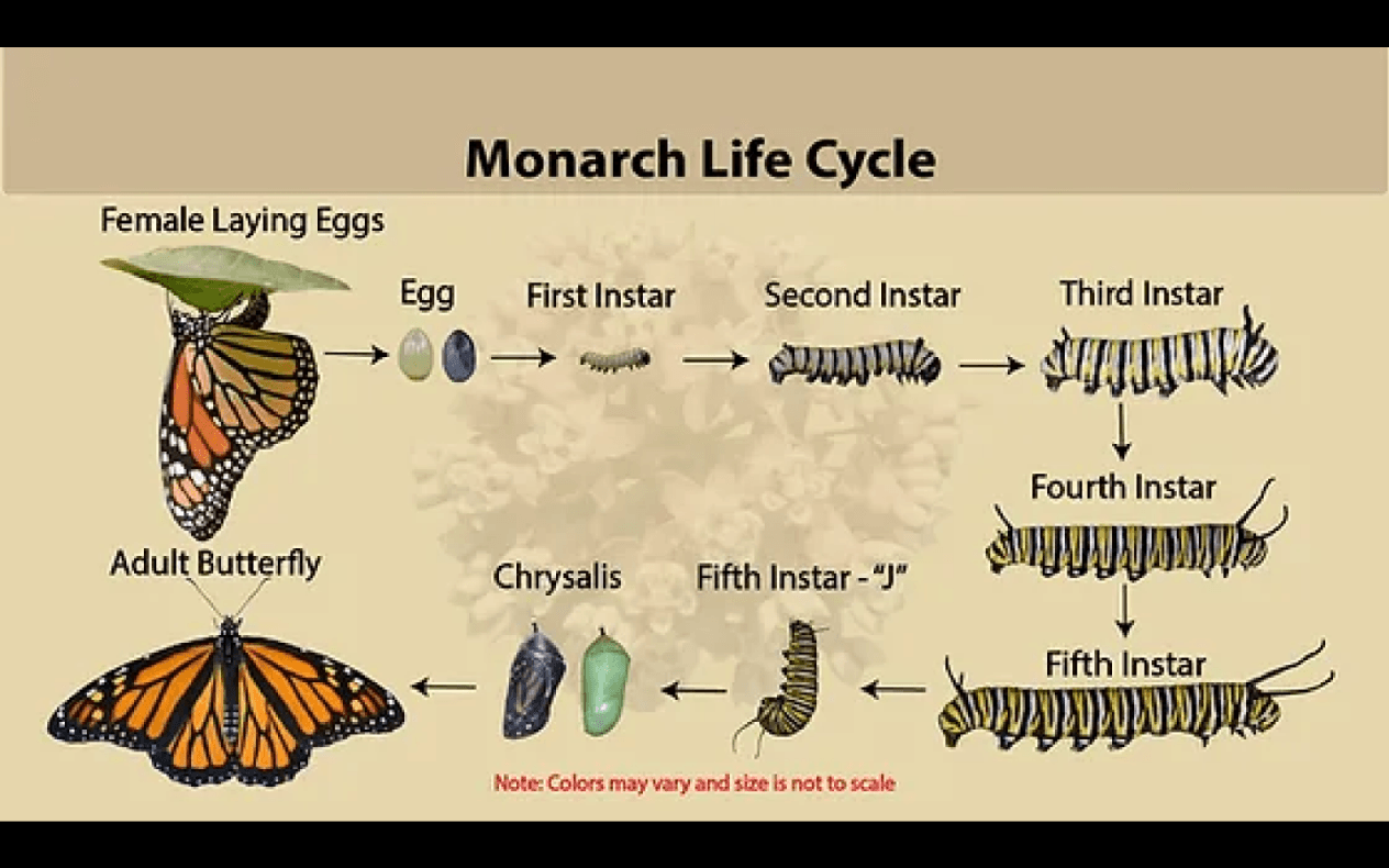 This diagram shows the steps in a monarch butterflies life. The egg goes through several instars before reaching the final, fifth instar before becoming a butterfly. What is the meaning of instar?