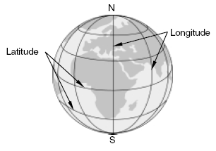 This images shows the Earths' lines of longitude and latitude. Based on the image, which lines run East to West?