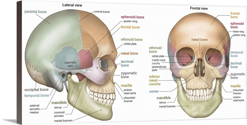 This image shows the lateral and frontal views of a skull. Based on the image below, what is the meaning of the word lateral?