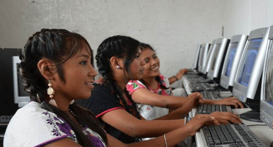 La foto representa una indígena en México que está en un examen de inglés porque es estudiante de inglés.