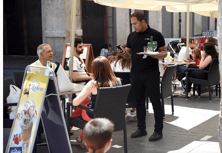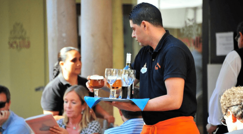 Acaban de comer y beber en un restaurante en el centro del pueblo porque es el cumpleaños de la mujer.