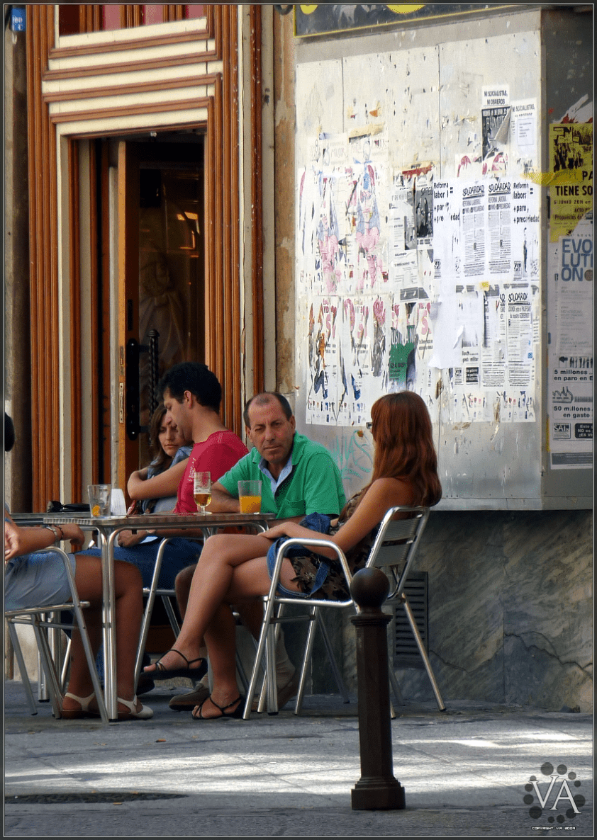 Representa un hombre en un banco en un parque central de Madrid. Está en la sombra porque hace mucho calor.