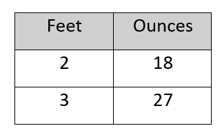 This table is incorrect.  You can not convert feet to ounces.