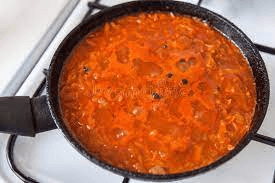 In this cooking method, smaller bite-sized, tough cuts of meat are seared first, then completely submerged in cooking liquid to produce a rich sauce and tender meat.